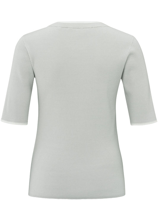 Rib Fitted Sweater Half Sleeves With Contrast Details : Grey Melange 99981