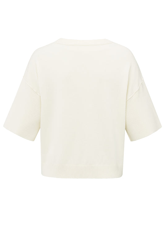 Short Sleeve Rib Stitch Cardigan : Off White Knit 99990