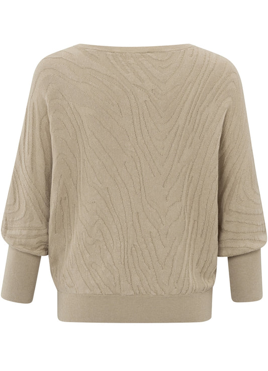 Boatneck Jaquard Sweater 3/4 Slv : Humus Beige 51304