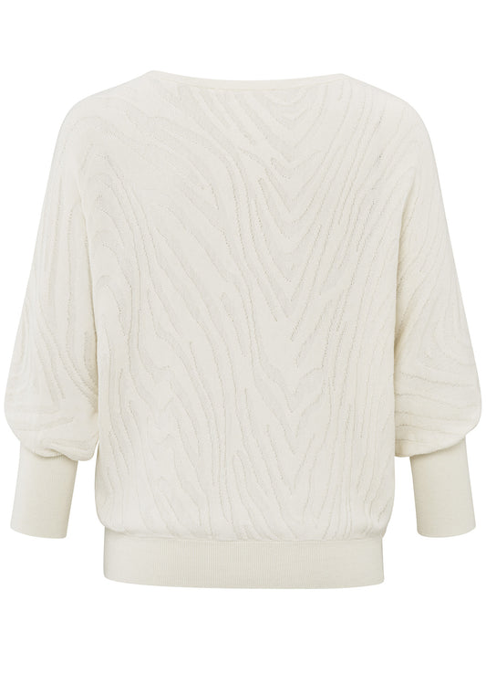 Boatneck Jaquard Sweater 3/4 Slv : Off White 99986