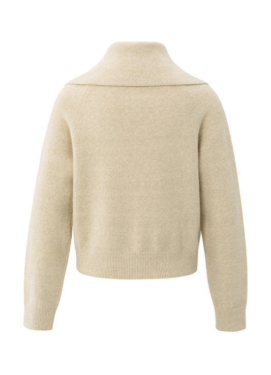Cardigan With Zipper And Wide : Yellow Sand Beige Melange 99009