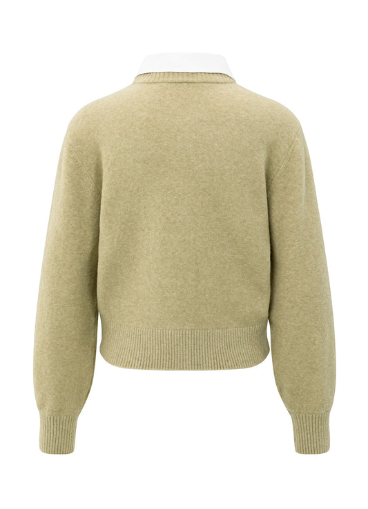 Cardigan With Detachable Woven : Pale Olive Green 50522