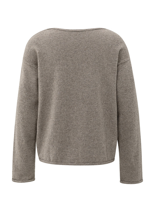 Double V-Neck Sweater With But : Brownish Grey 99018