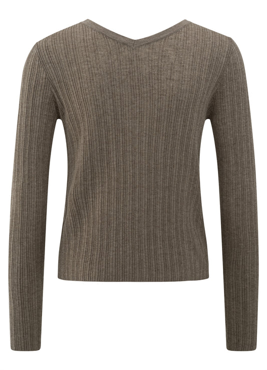 Fine Rib Knitted Cardigan : Greyish Brown Melange 999482