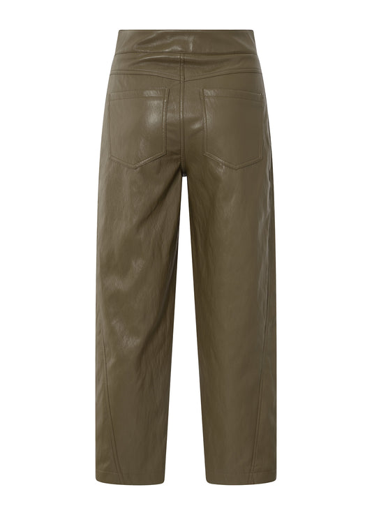 Faux Leather Carrot Fit Trouse : Capers Brownish Green 80820