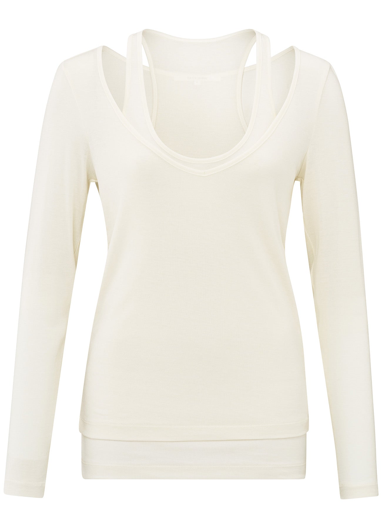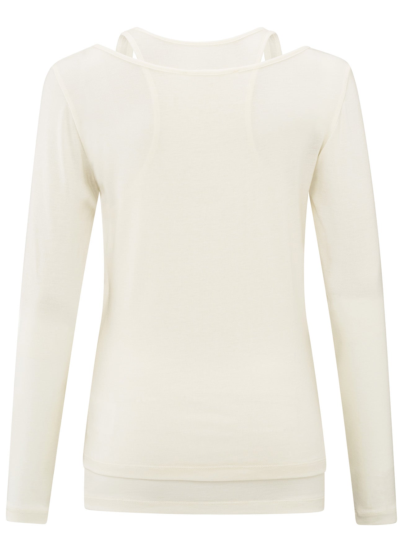 This modern layered top combines a sleeveless cami with spaghetti straps and a fitted long-sleeve top with a deep round neckline. Crafted from soft, stretchy fabric, it offers a comfortable, tailored fit. Wear both pieces together for a playful layered effect or separately for versatile styling options.